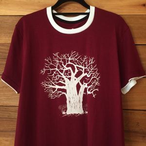 This hand-drawn Baobab design by Greyloerie is a limited edition two-colour (Maroon and White) T-shirt featuring a white Baobab tree.